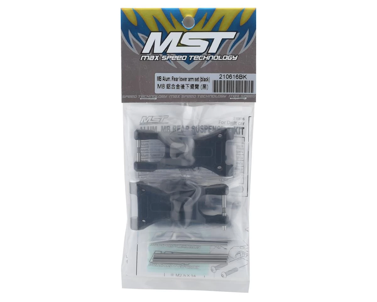 This is an optional MST Black Aluminum MB Rear Suspension Kit, intended for use with MST RMX 2.0 1/10 2WD Drift Car kits. These black anodized aluminum parts are stronger and longer lasting than the stock plastic version, while adding style points to the kit. The length can be adjusted to either 3mm longer or 3mm shorter than the stock part for added adjustability and customization.Â