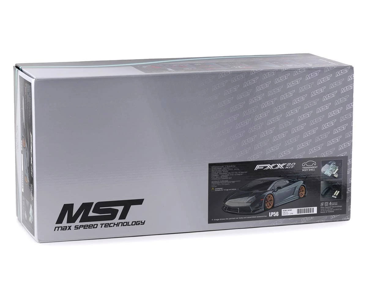 The MST FXX 2.0 S 1/10 2WD Drift Car Kit with clear LP56 Body combines the centralized chassis configuration of the FXX 2.0 KMW, with a redesigned motor forward transmission configuration and front suspension system to create an amazingly progressive driving experience. This rear-wheel drive specific design is complimented by the unique MB rear suspension system that provides increased rear geometry adjustments, allowing the suspension to better handle steep drift angles with an optimized secondary reduction ratio for improved throttle control. All of these features combined create a high performance chassis that provides handling characteristics more like that of a 1:1 drift car.