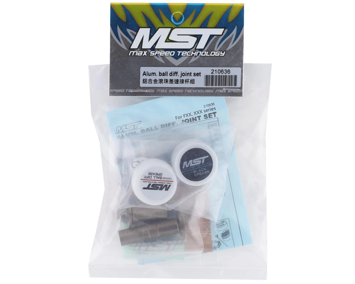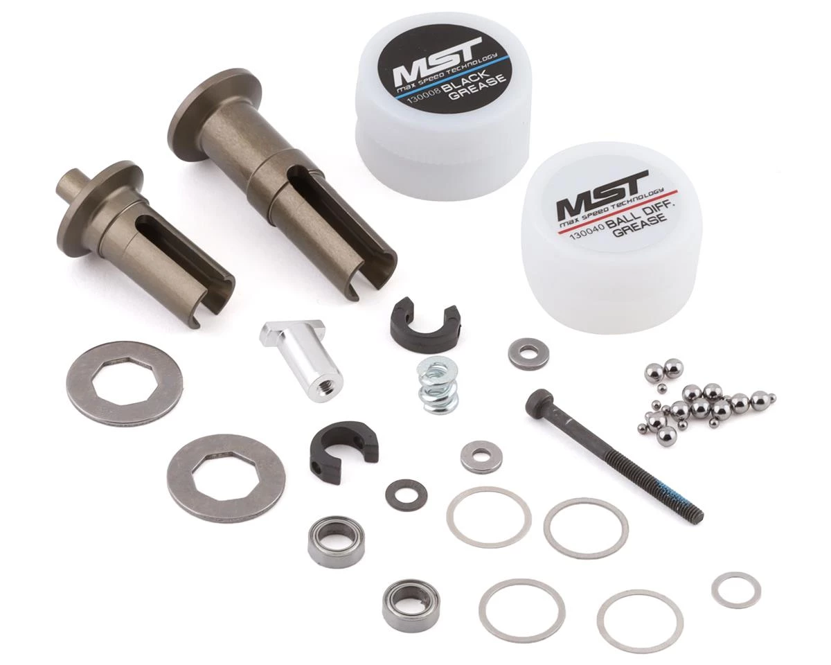 The MST FXX-D Ball Differential Set is an upgrade for MST FMX-D, FSX-D, FXX-D and XXX-D models. Package includes the parts needed to build one ball differential with aluminum outdrives, driveshaft blades, 36 tooth main gear, 17 tooth drive gear and purple aluminum joint rings.