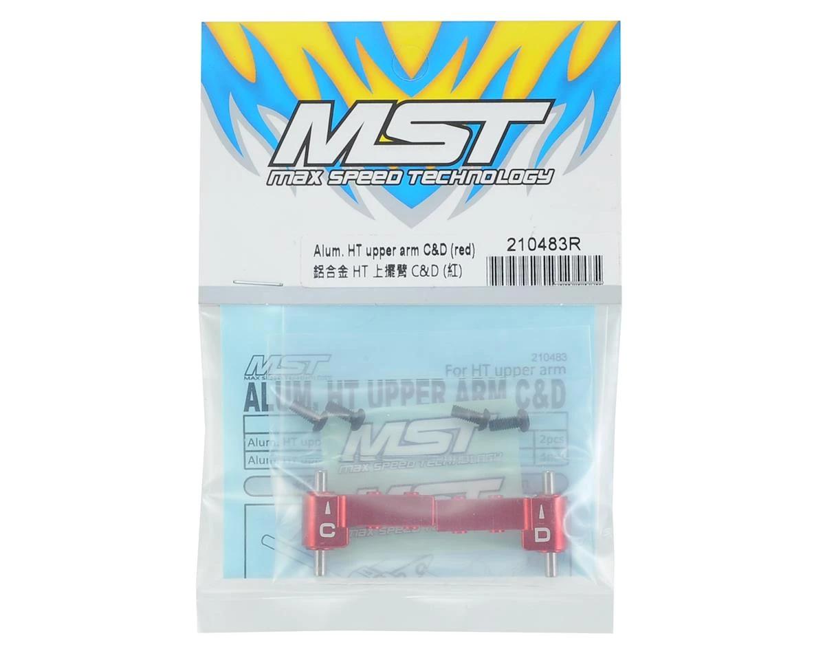 The MST FXX-D Aluminum HT Upper Arm is an optional upgrade for the FXX-D, FMX-D, RRX-D, RMX-D, FSX-D and XXX-D models. These C & D position front upper arms are a direct replacement for the stock part (MXS-210058), and will increase durability, reduce flex and help to increase suspension precision. Plus, the availability of a variety of colors will give you the option to give your MST ride a custom look. Package includes left and right side HT upper arms, hinge pins and hardware.Â