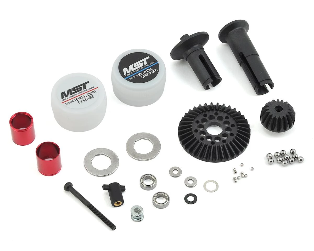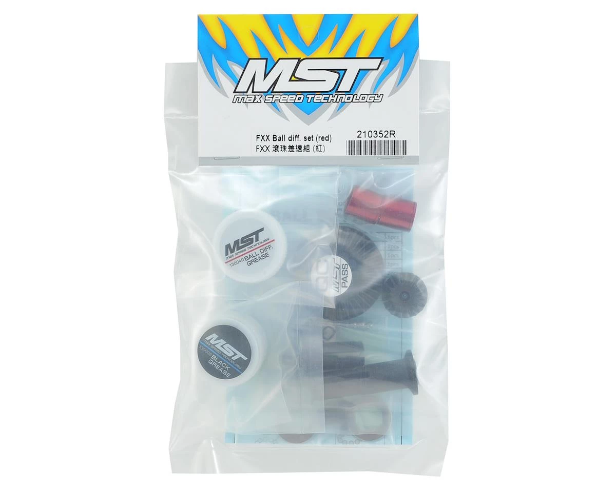 The MST FXX-D Ball Differential Set is an upgrade for MST FMX-D, FSX-D, FXX-D and XXX-D models. Package includes the parts to build one ball differential with composite outdrives, 36 tooth main gear, 17 tooth drive gear and purple aluminum joint rings.