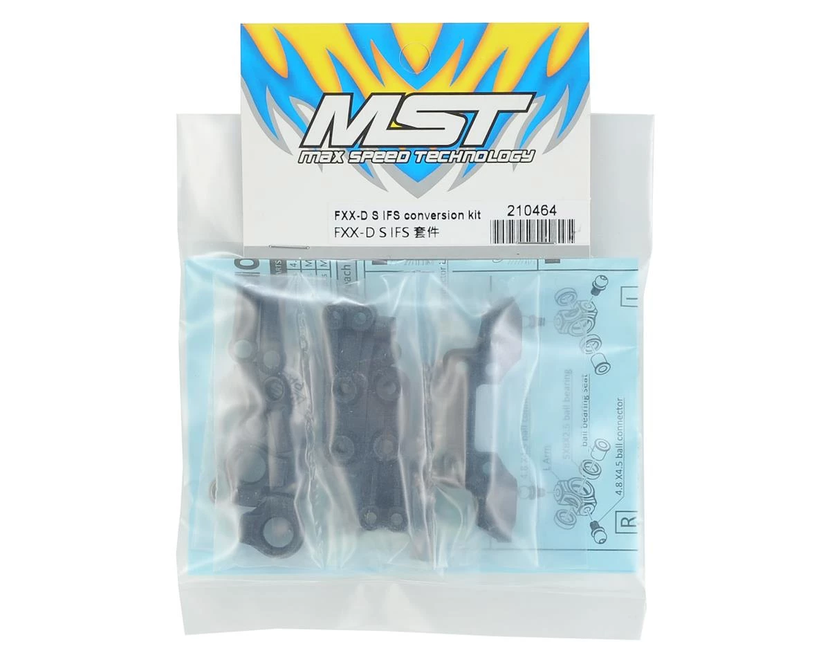 The MST FXX-D IFS Conversion Kit is an FXX-D specific option that allows you to eliminate the front shock tower, and set up the front end with a monocoque style suspension system. The unique design does more than lower your CG. By changing the spacer length at the pivot block ball studs, you can tune the damper force using leverage ratios instead of changing the piston or shock oil. Also, you can adjust the deck height by adjusting the length of the turnbuckles. Package includes all the parts needed to complete the conversion.
