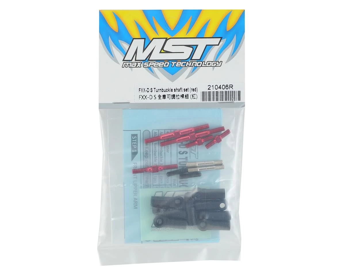The MST FXX-D S Turnbuckle Shaft Set is a complete kit that replaces all the fixed length links with adjustable turnbuckles for increased tuning options. Plus, because these are machined aluminum turnbuckles, weight is kept to a minimum, and the included rod ends finish off the package creating an all inclusive upgrade that will add custom looks and improved function.