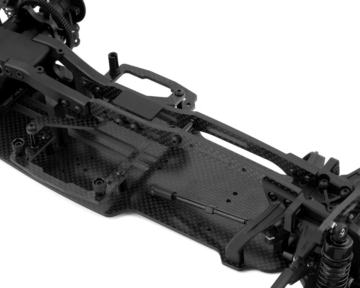The MST RMX 2.5 RS 1/10 RWD Electric Drift Car Kit offers a host of features drift enthusiasts want. The transmission allows either RMX or RRX style motor mount options. This gives the driver the option to choose upper or lower center of gravity positions as needed to suit the individuals needs. Two servo mounting positions are offered, with the option of choosing vertical or lateral servo mount positions to tune the weight bias. The servo mount positions bring with them two different battery mount options with an RMX 2.5 RS specific quick-release carbon fiber battery holder. Combine this with multiple options for electronics placement and you have an incredibly tuneable chassis that can be setup in a variety of ways to suit various track conditions and driving styles.Â