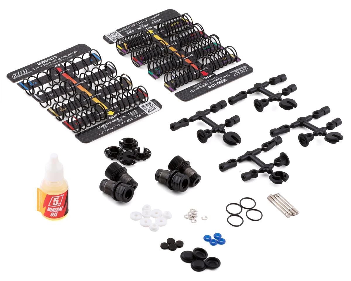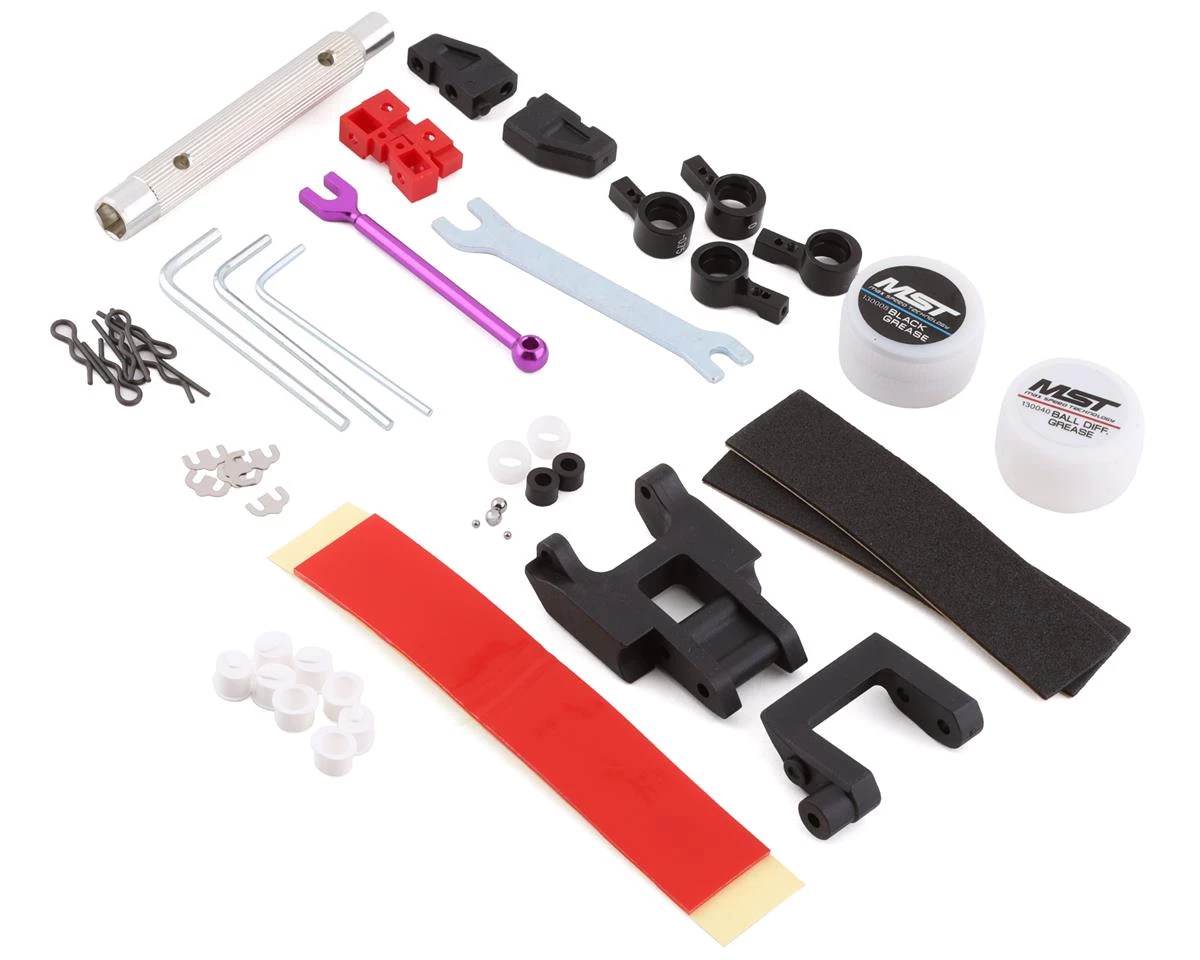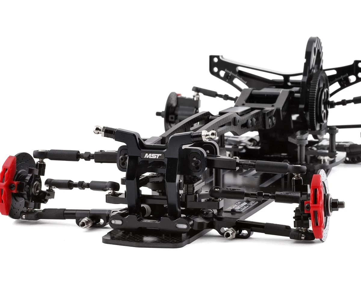 - Aluminum MB rear suspension system provides multiple adjustment mechanisms to change roll force with center of gravity, to increase or decrease tail slip