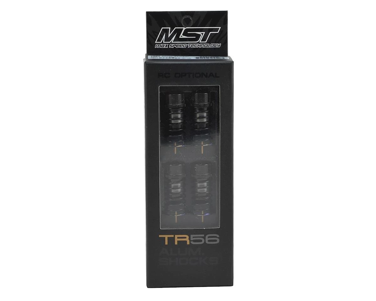 The MST TR56 Aluminum Damper Set is a precision machined shock option for any MST kit. These shocks feature hard coated shock bodies with teflon pistons and shock shaft guides, combined with a nickel coated shock shaft to deliver smooth damper action and long life. This kit includes all the parts you need to build a complete set of four shocks. It even includes the springs and shock oil! Plus, the kit includes three different length lower shock ends, allowing you to adjust the overall length of the shock between 56mm, 58.5mm or 61mm. Additionally, the shocks are available with blue, black, red or purple anodized accessories to give your ride a personalized and custom look. Â